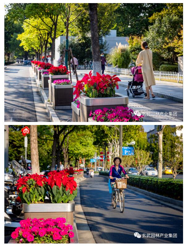 对北京东路、市府门前路、长江路、中山东路、中山路、鼓楼广场等重要节点采用组合花箱、护栏花箱、花碗、灯杆挂花、彩色花球等多种组合搭配,重点选用亮金女贞、三角梅、龙血树、变叶木、深蓝鼠尾草、孔雀草、一品红、欧月、垂挂牵牛等花卉,丰富城市街角,营造出浓厚的节日气氛。